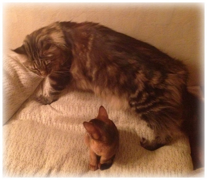 И пошла я в кухню… — нечесаная, неумытая — кормить котов, а те идут следом и Муня объясняет мелкому: «Ты все понял?» Нежно так объясняет, курлыкая, как только мэйнкуны могут курлыкать. А мелкий лепечет еле слышно: «Понял, дядинька, век вам благодарный буду! А как дать людям понять, что я хочу играть?»