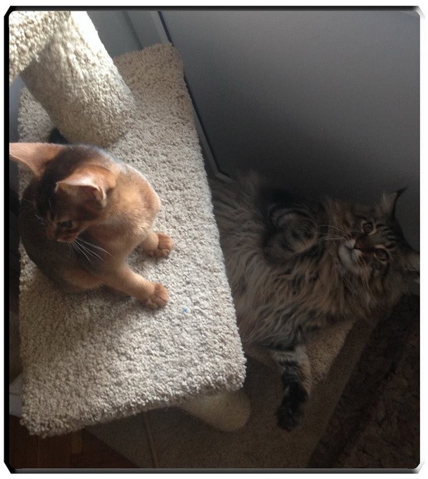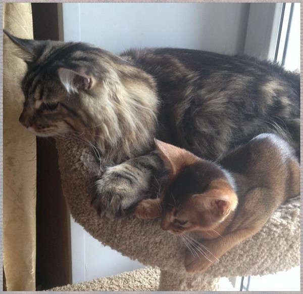 И все же мэйнкуны не зря считаются самыми умными котами. Муня раскинул мозгом и решил, что бегать продуктивнее, чем прыгать. И теперь в коридоре то и дело случаются половецкие пляски: мелким горохом сыплется Буся, тяжелой конницей летит за ним Муня. Ан снова незадача… в беге Муня шмакодявку мгновенно обгоняет, и, как только это происходит, мелкий тут же бежит в обратную сторону. Муня тормозит когтями по полу, разворачивается и снова в безрезультатную погоню — и так несколько десятков раз в день!