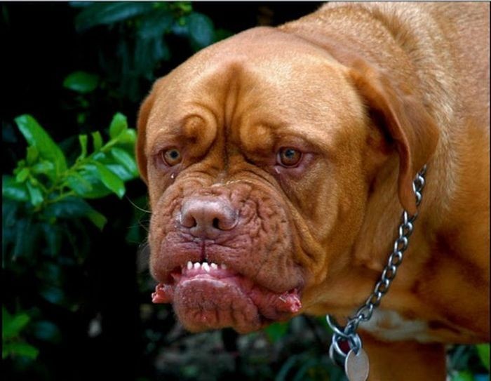 Выхожу из лифта. В подъезд входит женщина, на цепи у нее псина. Не знаю, какая именно это порода, но с виду - этакая коричневая тумбочка, состоящая из мускулов, башка здоровенная, глазки маленькие, и морда как у акулы. Словом, караул.