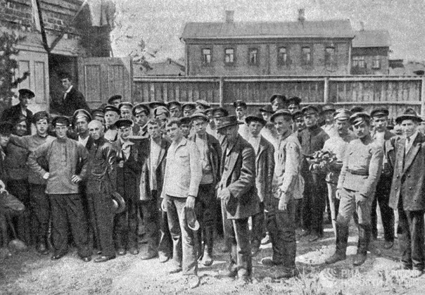 Петроградские рабочие на мобилизационном пункте во время Корниловского мятежа. 1917 год