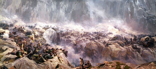Однако другого варианта, кроме как идти вперед, у полководца, не проигравшего ни одного сражения, не было. И наши воины пошли через Альпы там, где сегодня это делают лишь альпинисты со специальным снаряжением. Ладно бы это было простым переходом из точки А в точку Б. Русским же солдатам, кроме своей амуниции, приходилось тащить лошадей, пушки, раненых товарищей. Кроме того, «простые» горные участки, где были пешеходные тропы, они преодолевали в жарких схватках с поджидающим противником. А в Мутенской долине русская армия вообще оказалась в окружении.