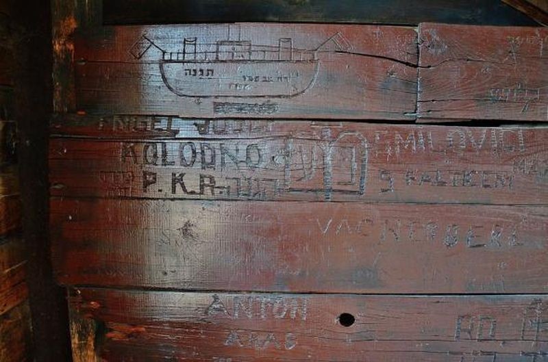 Надписи на стенах бараков, оставленные узниками