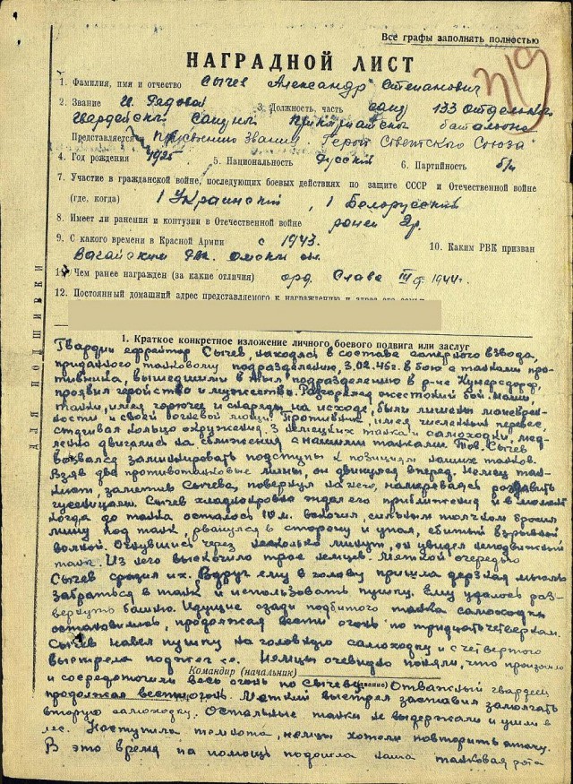 Предлагаю вашему вниманию отрывок из книги Н. К. Попеля "Впереди - Берлин!" (М.; СПб., 2001. С. 269.), посвящённый подвигу сапёра Сычёва.