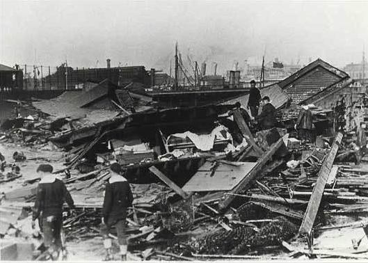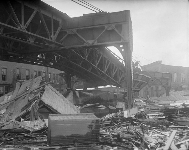 Черная волна разрушила даже ряд зданий и обрушила эстакаду железной дороги. Несколько лошадей, которые не захлебнулись в патоке, оказались настолько сильно застрявшими в ней, что их пришлось застрелить.