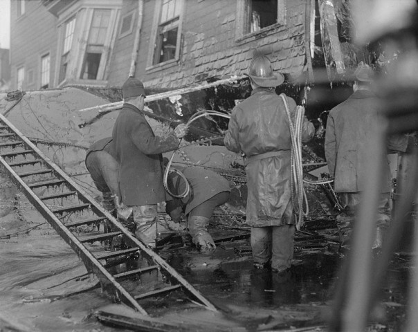 В Норт-Энде, старинном районе Бостона, взрывная волна снесла много домов, на их месте остались одни фундаменты. Крупные металлические обломки обрушили надземную железную дорогу, и поезд сошёл с рельсов. В 2004 году писатель Стивен Пулео в исторической реконструкции Dark Tide описал, как в течение нескольких дней в тёмной липкой массе постепенно обнаруживали различные предметы и тела — бесформенные, неопределённые. Никто не мог с первого взгляда определить, человек это или животное. После взрыва в панике все отчаянно старались вырваться из тягучей жижи и с каждым движением только глубже увязали.