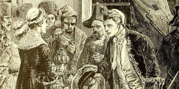 Графиня Селкирк только что закончила завтракать, когда увидела ужасных негодяев, окружавших дом. Старший офицер учтиво попросил провести инвентаризацию серебра. Когда оно было подсчитано, оказалось, что кофе и чайник пропали без вести, причём прямо с кофе и чаем.