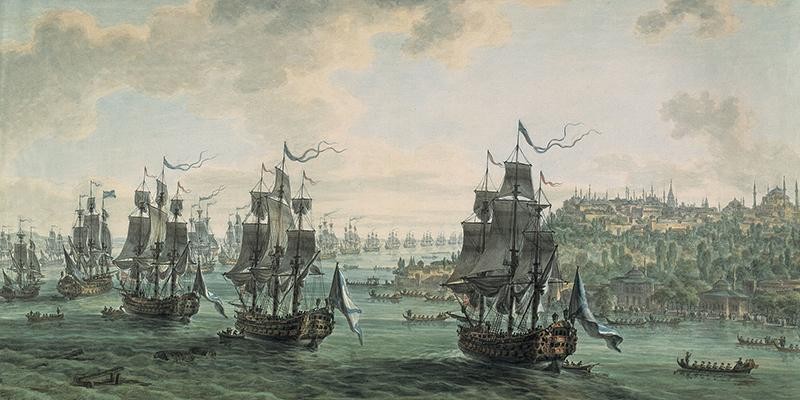 Черноморский флот проходит Босфорский пролив. Художник М. Иванов, 1799