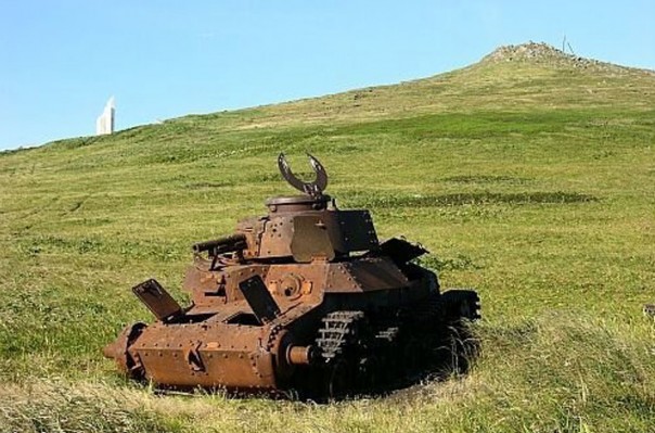 Между тем на поле боя явился танковый полк — главная ударная сила японцев. Последние имели довольно разумный план: рассечь десант на части, отрезать и уничтожить. Однако в тумане было трудно ориентироваться, японские машины опасно сблизились с десантниками. Их жгли в упор гранатами и огнём противотанковых ружей.