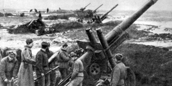 Артиллерия советского 2-го Белорусского фронта ведёт огонь в Восточной Пруссии