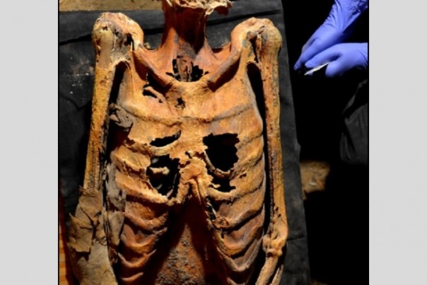 Женский торс с татуировкой на шее был датирован периодом 1300-1070 гг. до н.э. Изучением останков занималась биоархеолог Энн Остин из Стэнфордского университета.