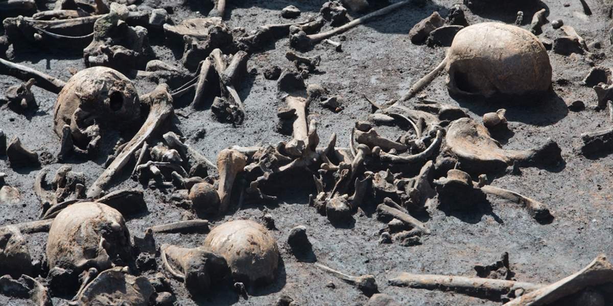 В одном месте нашли просто груду скелетов. Конечно, изначально хочется представить тут схватку за что-то важное, например, бой вокруг тела вождя. Но, скорее всего, это не место ожесточённой рукопашной — тела так снесло течение реки.