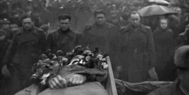 Бой на полотне железной дороги — последние кадры, снятые капитаном Владимиром Сущинским. Двадцать второго февраля 1945 года рядом с ним разорвался снаряд. Похороны друга и напарника снимал другой фронтовой оператор — Николай Быков.