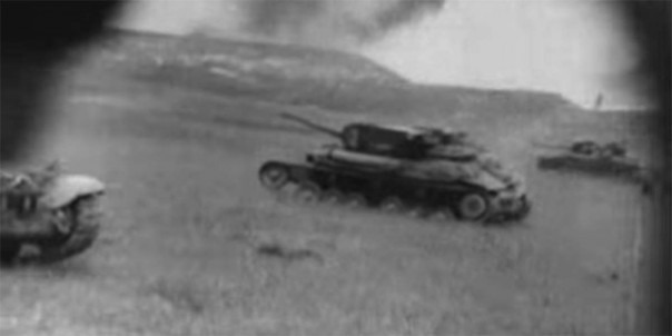 В кадр попали редкие гости на экране — атакующие ленд-лизовские «валентайны», а также тяжёлый труд механика‑водителя.
