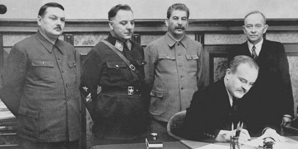 Вячеслав Молотов подписывает договор о взаимопомощи и дружбе с правительством Куусинена