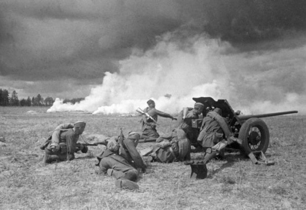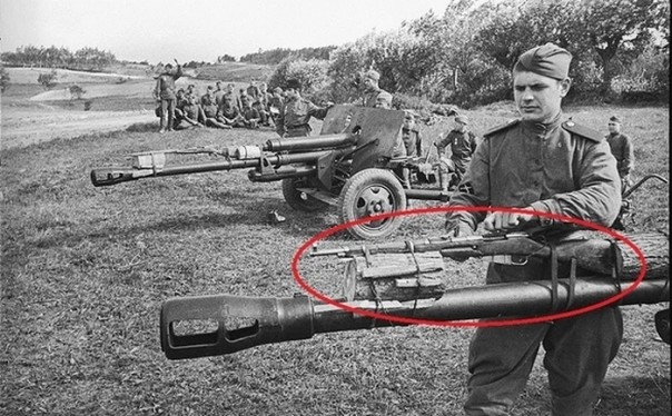 В сети ходит достаточно редкая фотография времен Великой Отечественной войны. На ней изображено несколько артиллерийских орудий и группа красноармейцев, большая часть из которых сидит поодаль. Другие, стоят рядом с орудиями и (в том числе) привязывают к их стволам винтовки Мосина, которые зачем-то посажены на деревянные колодки и веревки. Для чего нужна такая система и что собираются делать солдаты? На самом деле запечатлённая ситуация на снимке вовсе не какой-то солдатский юмор и даже не «фейк».