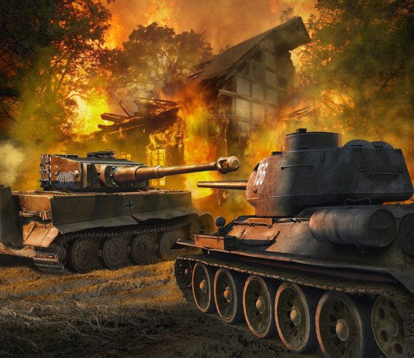 Поединок (танки «Тигр» и «Т-34»). Художник Валерий Петелин.
