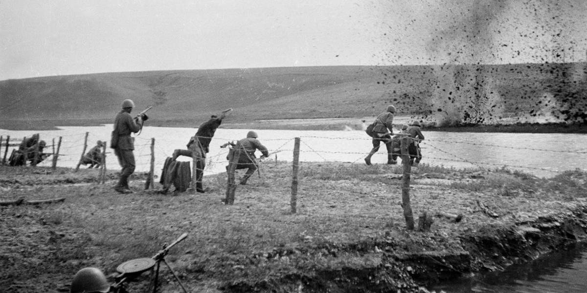 Атакующей советской пехоте встреча с проволокой явно не доставляла радости.
