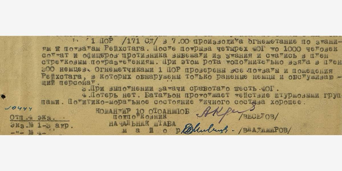 В три часа дня советские войска начали первый штурм Рейхстага.