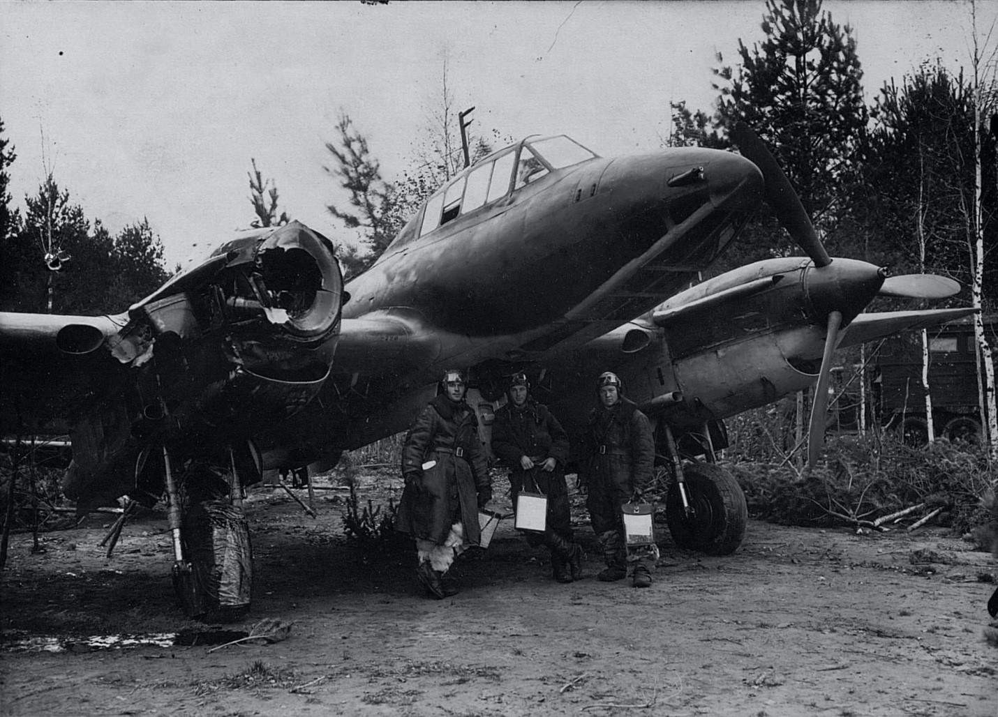 Возможно, бомбардировщику удалось совершить первый заход с пикирования и сбросить внешнюю подвеску. Поэтому уже «на земле стальное крошево». После этого подоспели «черные кресты».