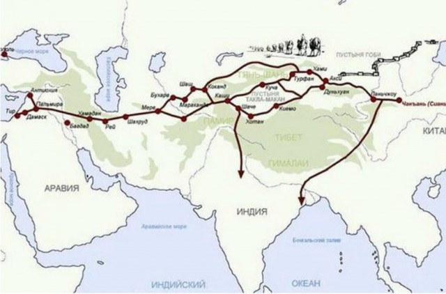 Великий шелковый путь, связывающий Китай и города Центральной Азии со странами Средиземноморья, в течение многих веков играл главную роль в процессах товарного и культурного обмена между этими регионами. Зародившись во II веке до нашей эры как торговый путь между Китаем и городами Ферганской долины, позднее он приобрел статус важнейшей транспортной артерии между Востоком и Западом и просуществовал до Средневековья.