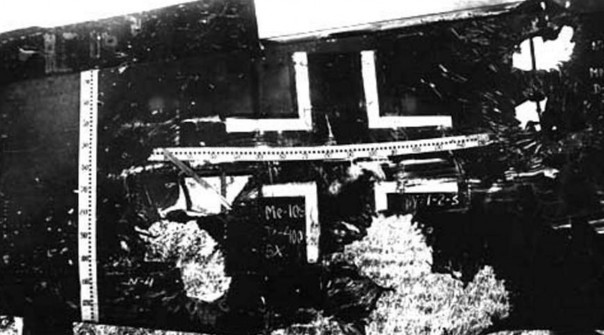 Пробоины от попадания из советской пушки ШВАК