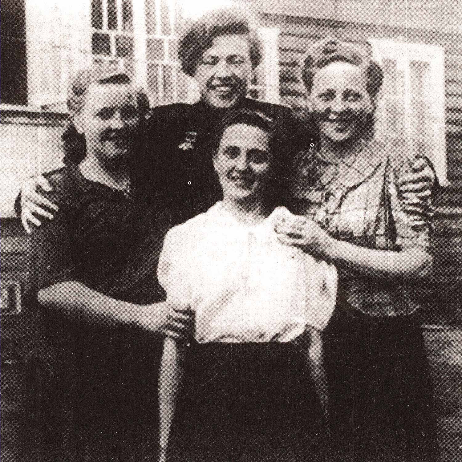 Боргни Сканке, Нина Крымова, Дагни Форслунд, Оддни Ёнсен во время подготовки разведотряда. 1941 год