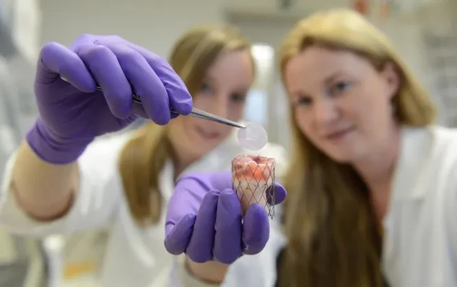 Заболевания сосудов наряду с сердечными болезнями остаются одними из самых опасных и частых в мире. Малоподвижный образ жизни, фастфуд, стрессы — и уже нарушается нормальный обмен веществ, паталогически меняется просвет сосудов. Это приводит к ишемической болезни сердца, инфаркту. Спасти человека в этой ситуации может только стент — искусственный элемент цилиндрической формы. Его вводят, как правило, через бедренную артерию на пластичном баллонном катетере к месту сужения сосуда. Хирург визуально наблюдает движение стента на экране рентгеновского аппарата. При достижении пораженного участка сосуда хирург активирует подачу газа в баллон, на котором закреплен стент, — раздуваясь, баллон вдавливает его в стенку сосуда. Регулируется требуемый просвет стента-сосуда за счет определенного давления в баллоне. После этого газ откачивается, но стент сохраняет заданный просвет.