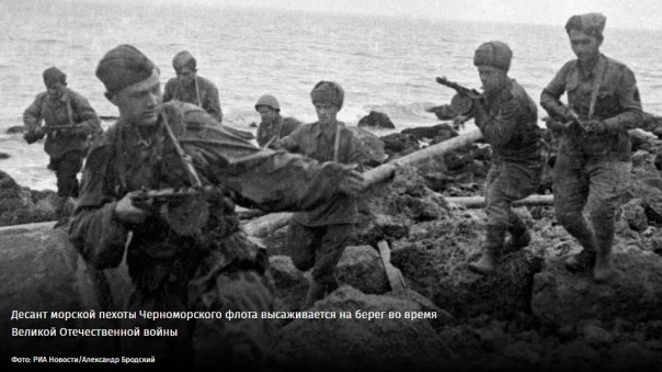 Десант морской пехоты Черноморского флота высаживается на берег во время Великой Отечественной войны