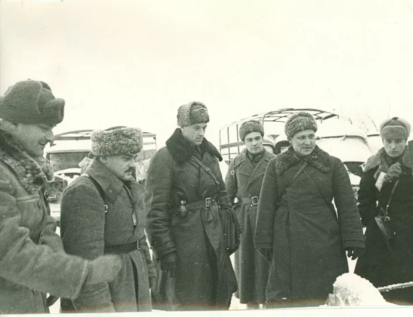 Пользователям представили фотографии конца 1941 года, на которых показаны как боевые будни советских полководцев во время сражений на подступах к столице, так и редкие минуты фронтового отдыха.