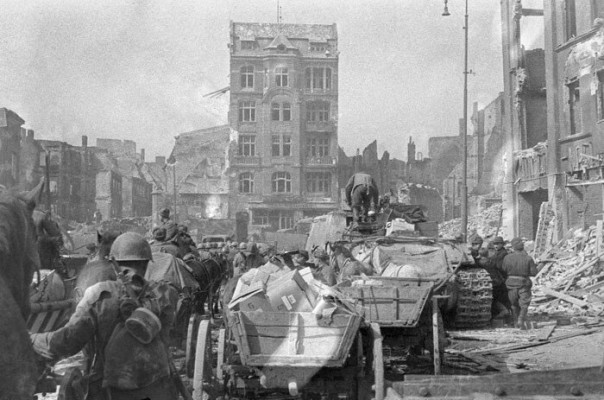 Одновременно соединения 11-й гвардейской армии, наступая с юга, форсировали реку Прегель и, соединившись с передовыми частями 43-й армии, замкнули кольцо окружения. К исходу третьего дня штурма наши войска заняли до 300 кварталов города-крепости. Но гитлеровцы продолжали упорно сопротивляться, у них была последняя надежда – устоять в центре города».