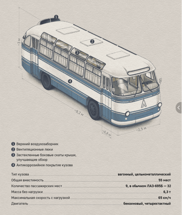 О том, как проходил первый в истории полет человека в космос, мы знаем едва ли не поминутно. Но до того, как Юрий Гагарин оказался в самой совершенной на тот момент ракете, он совершил еще одно путешествие — доехал до космодрома на самом современном советском автобусе того времени — ЛАЗ-695Б. По чертежам и кадрам кинохроники мы воссоздали облик "гагаринского" автобуса и узнали, чем он отличался от типовых машин, сходивших с заводского конвейера.
