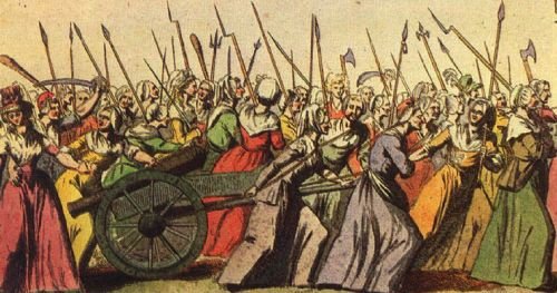 Мирная демонстрация 1789 г. В Париже народ ходил протестовать к королю с пушкой и чучелом королевы
