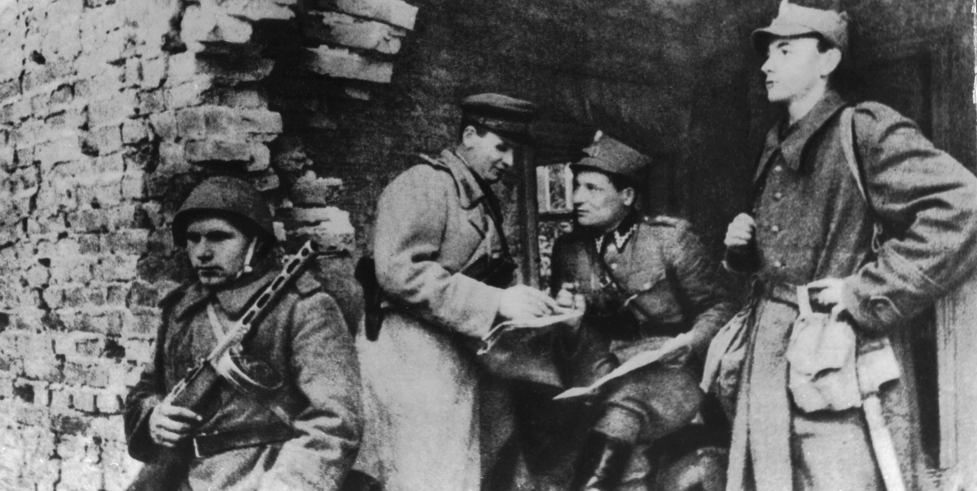 Солдаты 1-й польской армии на руинах Варшавы во время восстания в гетто (август — сентябрь 1944 года)