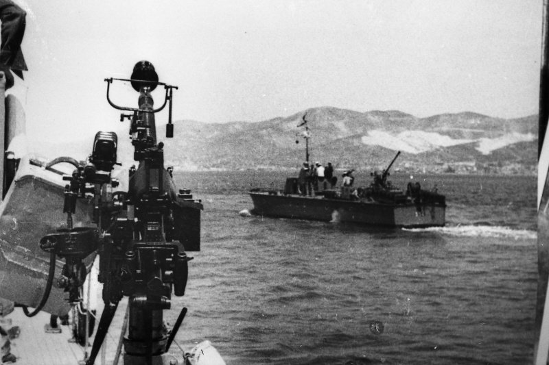 Советский катер МО-354 идёт вдоль побережья