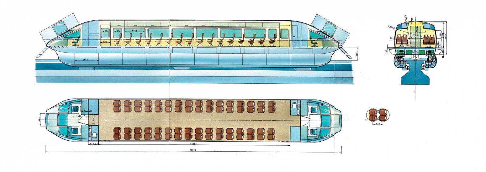 Аэродинамику разработали в ОКБ Яковлева, причем были изготовлены полноразмерные макеты сегмента с креслами и кабины. Расчетная скорость — 250 км/ч — отражена в индексе проекта. К сожалению, в 1993 году амбициозная идея разбилась об отсутствие финансирования. Источник