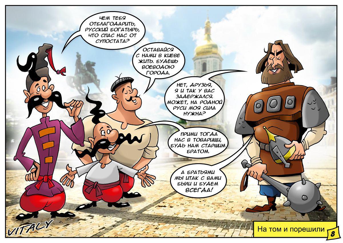 Иллюстратор из Днепропетровска Виталий Щербак нарисовал комикс об украино-российской дружбе под названием «Как Илья Муромец помог казакам от Идолища Майданного избавиться».