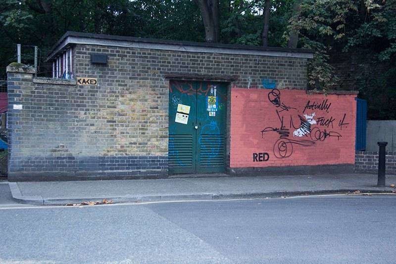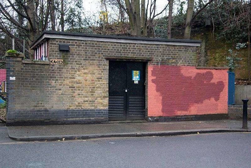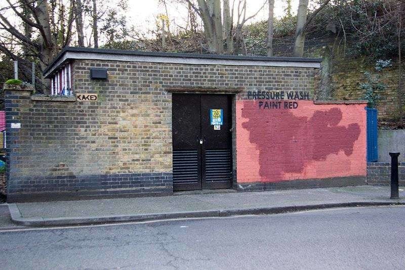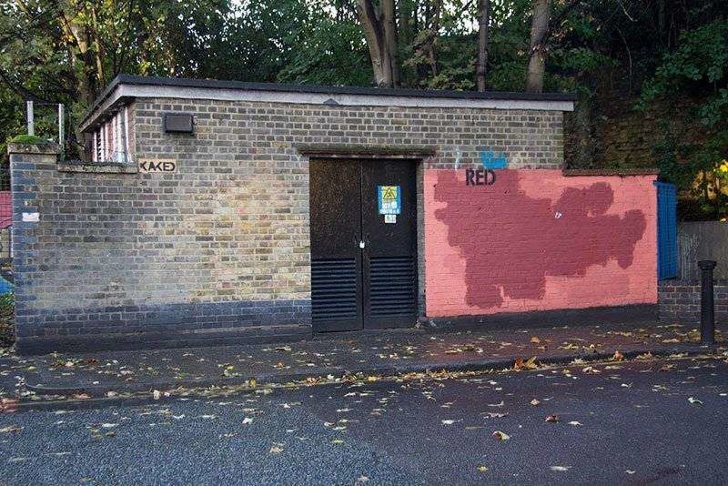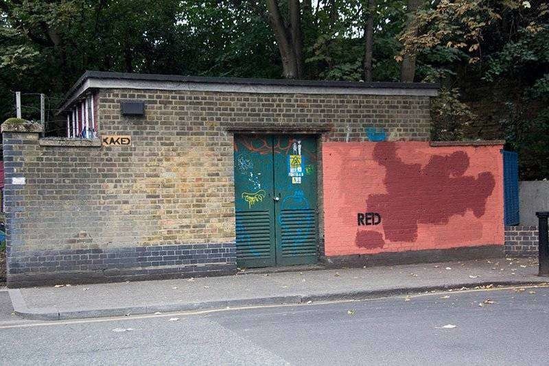 Лондонский художник, работающий в жанре стрит-арта, под ником Mobstr годами ездил на работу на велосипеде по одному и тому же маршруту. Однажды он заметил, что стена невысокого здания, на которой раньше располагалось граффити, закрашена красной краской. Так он решил присоединиться к веселью и написал поверх стены слово "Красный".