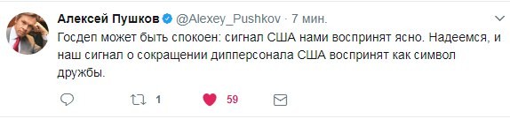 Политик также не уточнил, чего США ожидают от России, высылая «сигнал» - подданичества, согласия на действия США в любой точке мира, бесчестия или отказа от подъёма государства после развала Советского Союза?