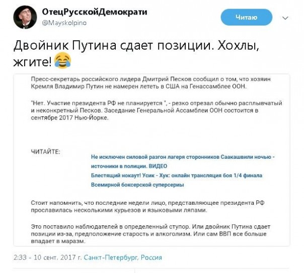 2. Не удивлюсь, если скоро Украина станет рассказывать, что фашисты блокировали Ленинград, чтобы не допустить появления на свет Путина.