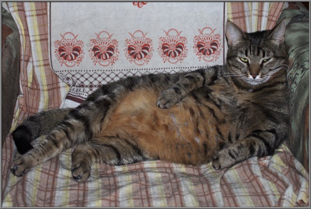 Через 10 минут я устал. Пятен было много и очень мелких. Я принял разумное решение, взять и просто закрасить, не мучаясь с каждым в отдельности. Через несколько минут дело было сделано. Вовка стоял и обсыхал…