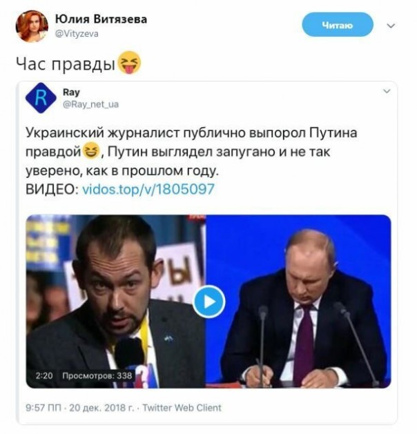 — Юлия Витязева (@Vityzeva) December 21, 2018