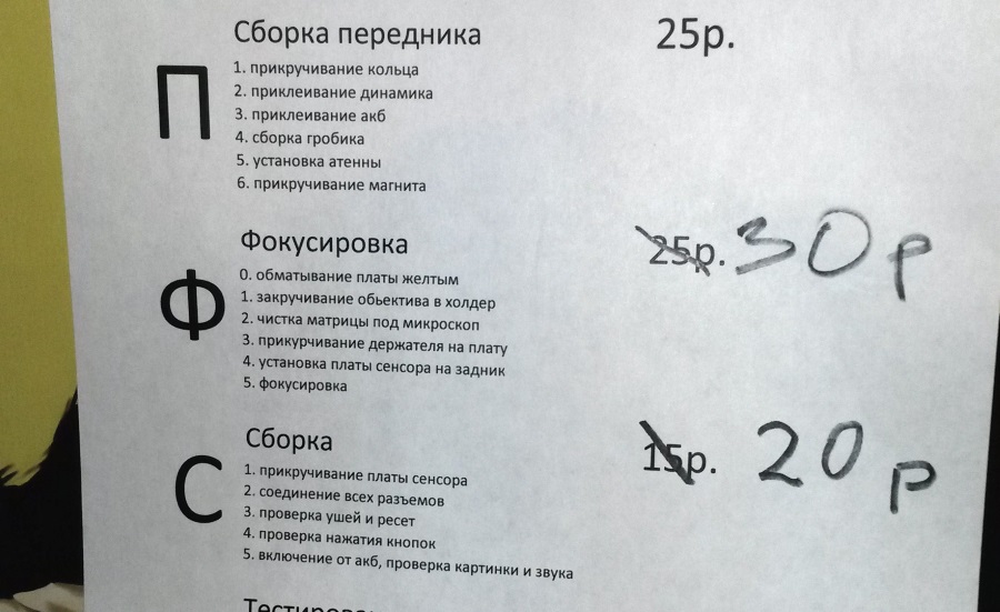 Кстати, у русских есть ещё один плюс по сравнению с их китайскими коллегами. Наши сборщики фонтанируют рацпредложениями: что можно улучшить, как можно сделать сборку проще и технологичнее. В Китае так не будет — там народ в этом плане довольно беспечен, думать во время механической работы не привык.