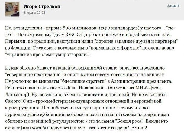 Ну а если бы они подождали бы хотя бы до следующего утра, то узнали бы, что оперативно состоялся суд и арест с этих счетов успешно снят. Как обычно, драматическое «всё пропало» оказалось очередным пшиком.