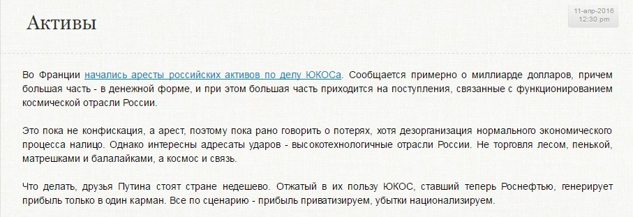 Не успела появиться в интернете новость о том, что активы «Роскосмоса» арестованы во Франции по иску акционеров ЮКОСа, как «путинслильщики» и «всепропальщики» затянули свою любимую песню.