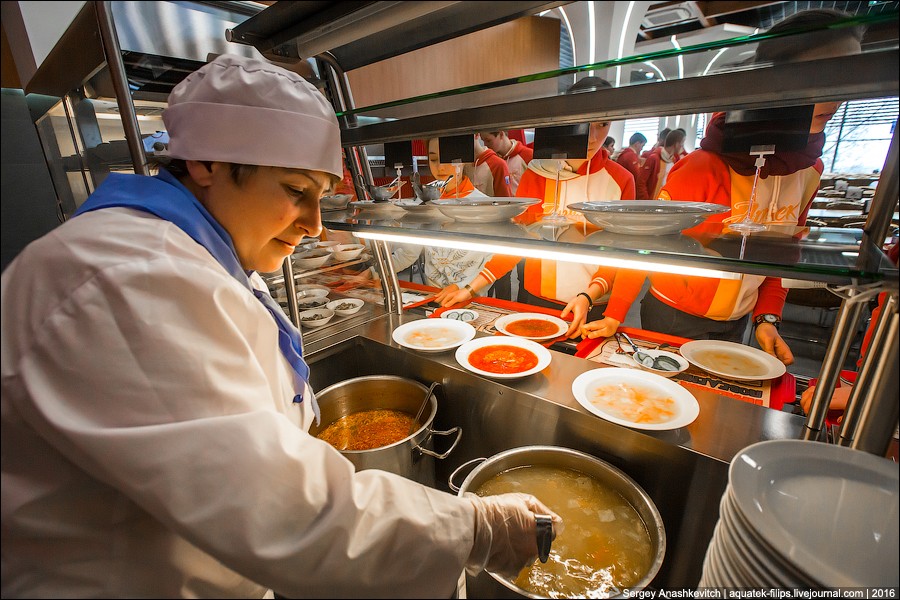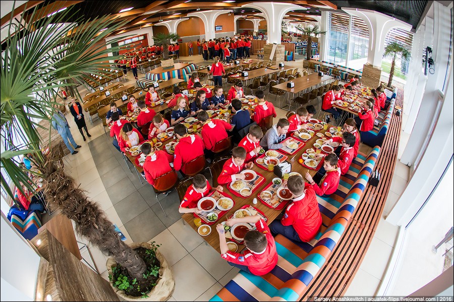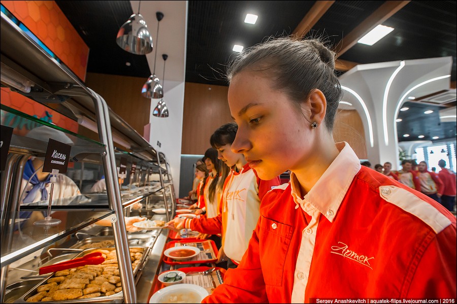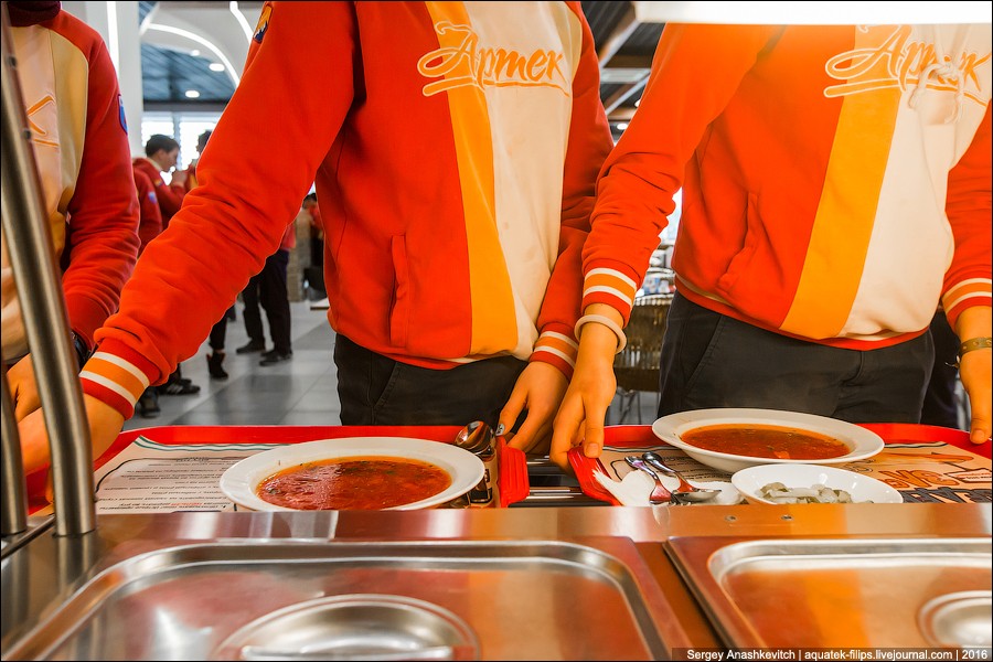 8. Пока я снимал все эти технологичные штучки и крутые фишки артековской столовой, дети заполнили все три (!!!) раздачи, нетерпеливо ожидая свой обед.