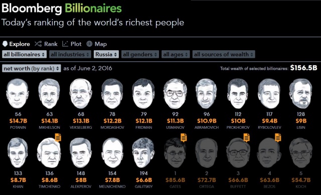 Большинство российских миллиардеров в рейтинге Bloomberg Billionaires, по данным американского агентства, смогли увеличить размер своего состояния с начала 2016 г.