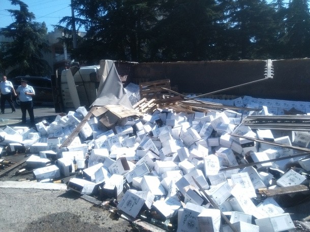 Грузовик с 18 тоннами "Массандры" опрокинулся на трассе в Крыму