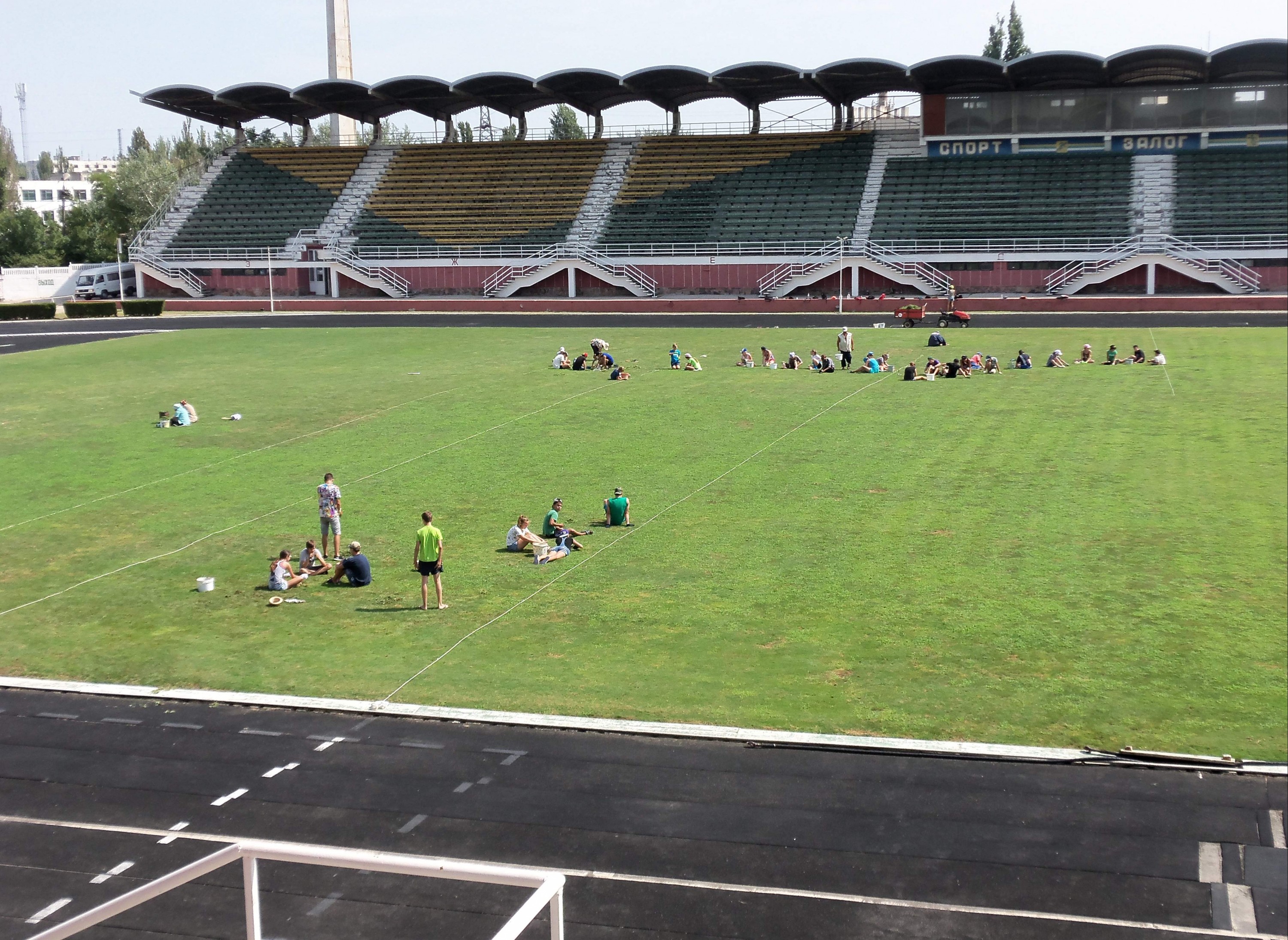 Администрация Керченского стадиона им. 50-летия Октября привлекает к работам на футбольном поле несовершеннолетних детей. Подростки выполняют прополку сорняка, который взошел после выполнения комплекса дренажных и агрохимических работ на поле в рамках масштабно разрекламированной ранее «реконструкции стадиона».