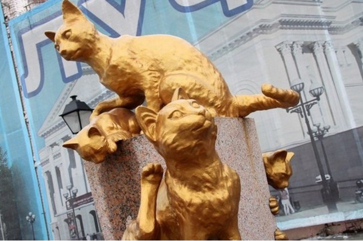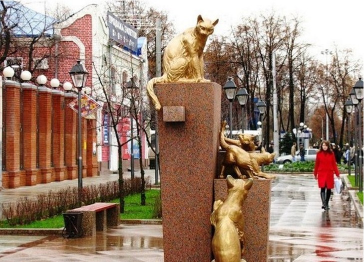Сквер Сибирских кошек — настоящая достопримечательность Тюмени! Здесь установлено двенадцать скульптурных композиций кошек, которые вылиты из чугуна и покрыты золотой краской. Этот монумент появился в память кошек-героев войны.