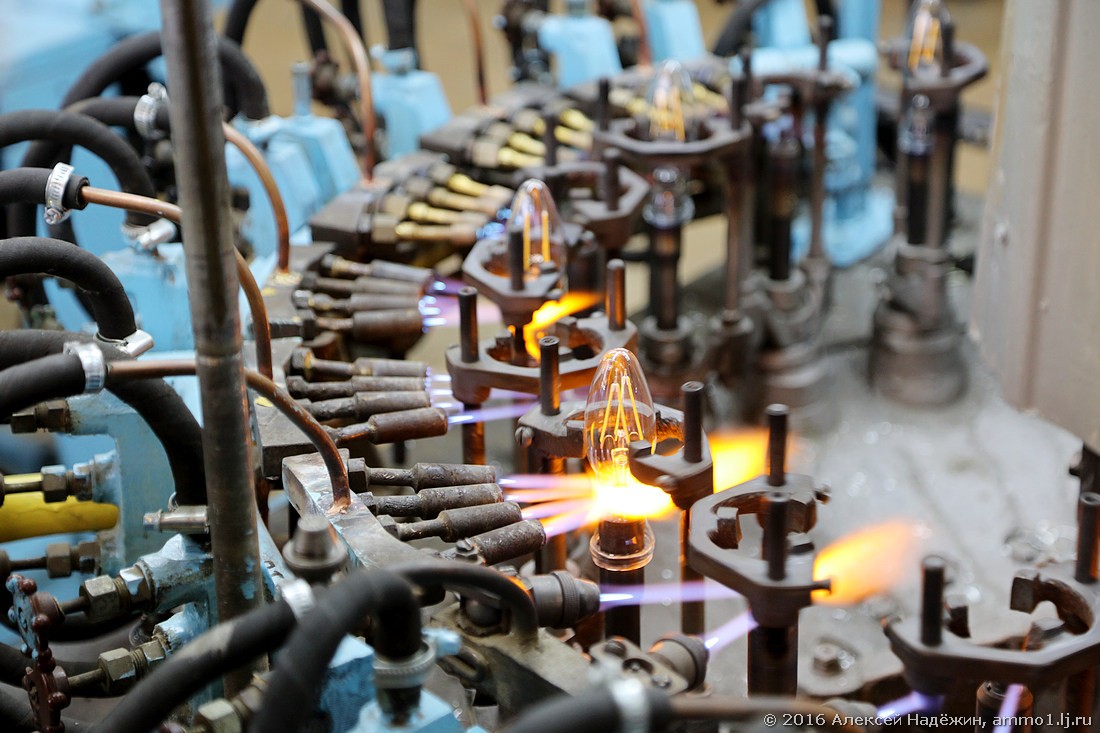 Помимо производства светодиодных ламп, я увидел автоматические линии, производящие обычные лампы накаливания.